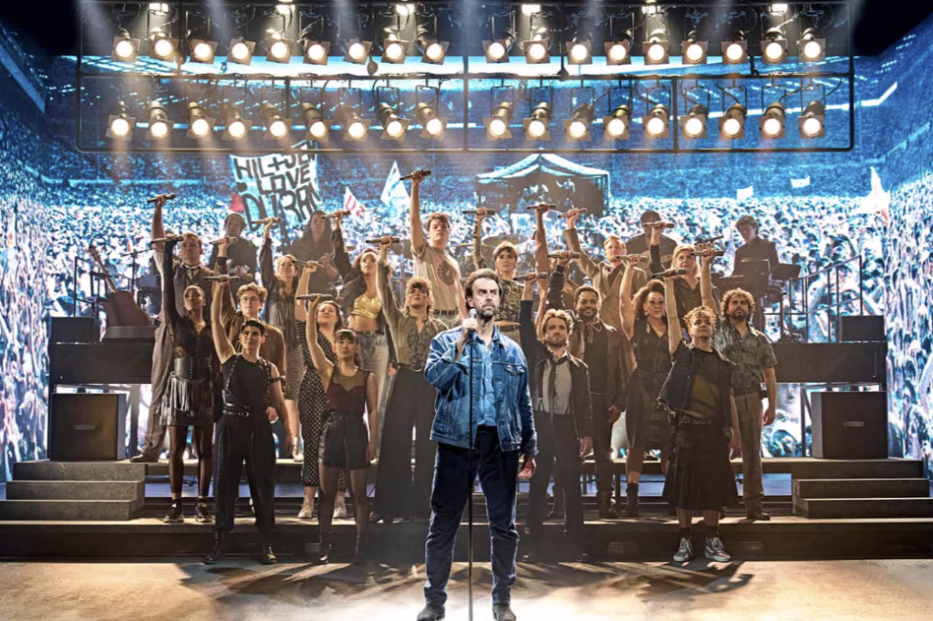 Just For One Day transferring from the Old Vic and now playing at the Shaftesbury Theatre revisits the seminal Live Aid fundraising concert of 1985 as it approaches its 40th anniversary. It is a lively, loud look at Bob Geldof and the Live Aid concerts that boasts thrilling music and manages to avoid hagiography. (As Craige Els says in his reprisal of the Bob Geldof role, “I’m no f-ing hero.“)