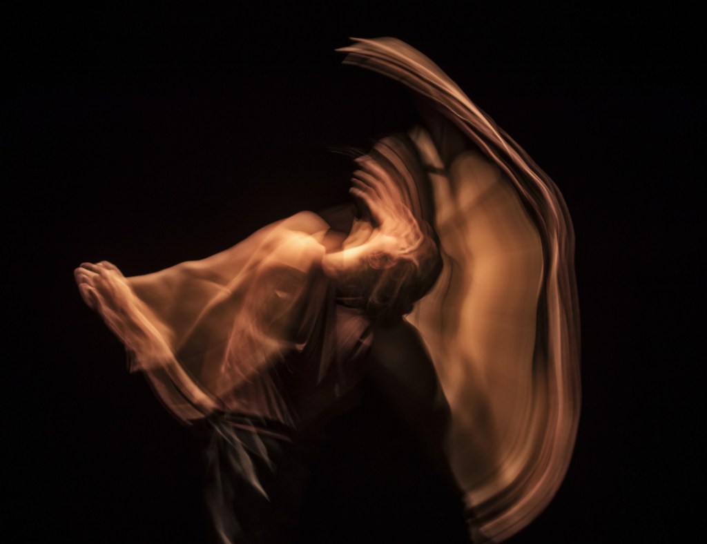 This work confines Cojocaru to a singular, uncompromising square of light. Within these strict bounds, the performance becomes a relentless partnership with the atmosphere itself. The sculptural lighting design (again, Michael Hulls, Maliphant’s long time collaborator) turns movement into a visual slipstream. As the tempo accelerates, the light leaves trails in its wake that are reminiscent of the glowing arcs of a sparkler against a dark sky.